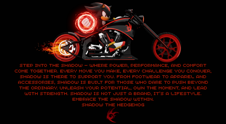 Shadow isn’t just a name from the gaming world — it’s an attitude. Dark, bold, and unstoppable, Shadow inspires a style that speaks to those who stand apart from the crowd. Our Shadow-inspired collection is built for people who value individuality, strength, and confidence. With sneakers, tees, and accessories designed in his signature dark aesthetic, this line captures the edge and energy of a true icon. It’s not about following trends — it’s about making your own. Wearing Shadow means embracing power, mystery, and fearless expression in everything you do. Step into the darkness. Own the style. Live the Shadow way.